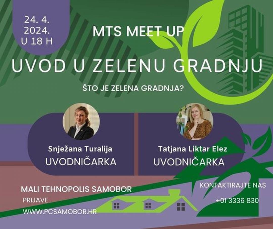 Poduzetnički centar Samobor priprema predavanje o zelenoj gradnji za srijedu, 24. travnja u 18 sati u Malom Tehnopolisu Samobor.