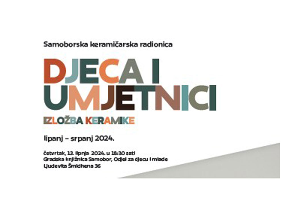 Povodom 30. obljetnice rada, Keramičarska radionica Udruge Samkerad priprema otvorenje izložbe naziva “Djeca i umjetnici”. Djela nastala u okviru radionica koje vodi Gizela Ulle Kovačić bit će predstavljena u četvrtak, 13. lipnja, u 18:30 u Odjelu za djecu i mlade Gradske knjižnice Samobor, a u programu otvorenja sudjelovat će Dječji zbor “Smješak” voditeljice Vesne Radinčić.