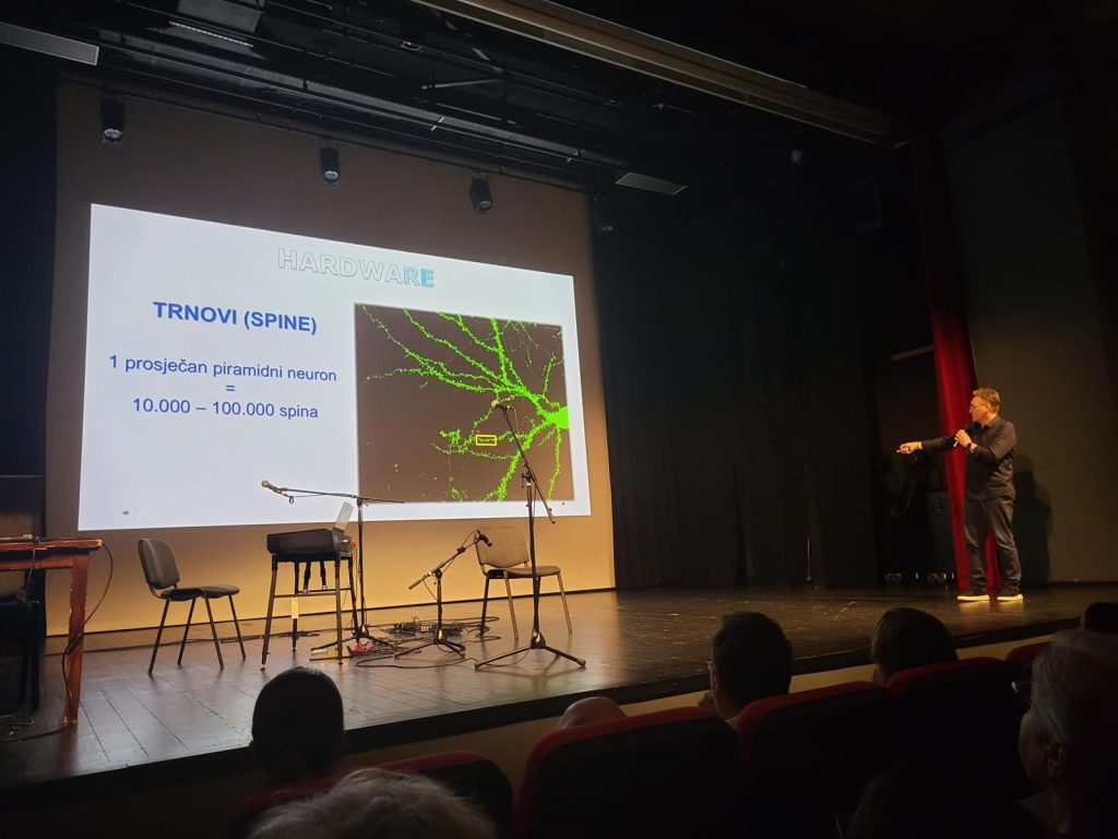 Zanimljivo predavanje na temu “Sve je u glavi – i zdravlje i bolest” održao je neurolog s Medicinskog fakulteta i Instituta za mozak, doktor medicine Goran Ivkić. Tijekom predavanja s okupljenima je podijelio znanje koje je presudno u procesu liječenja. Govorio je o kompleksnosti našeg tijela, funkcioniranju mozga, globalnom problemu komunikacije, moći informacija, sposobnosti oporavka našeg tijela kroz kontekst živčanog sustava, zatim o genetici i zabludama vezanim za genetiku, epigenetici, utjecaju straha i stresa na naš organizam te važnosti vjerovanja u liječenje.