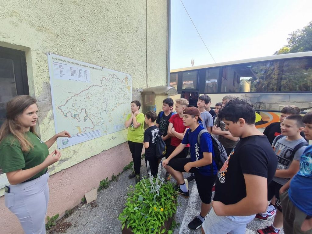 Na početku terenskog obilaska, učenici su obišli još jedan od izvora na području Bregane – izvor „kod Isuseka“ uz igralište NK Kobre u Bregani. Na temu izbora, učenici su dali prijedlog za iduću školsku godinu za istraživanjem podataka o kvaliteti vode i ispravnosti za piće na izvorima na području Bregane, Podvrha i Luga. Ispred ureda JU PP Žumberak-Samoborsko gorje u Grdanjcima stručna suradnica Andrea Blažević upoznala je učenike s osnovnim podacima o Parku, djelatnosti javnih ustanova u zaštiti prirode te posebnostima i potencijalima. To je bila prilika za brojna pitanja mladih geografa.