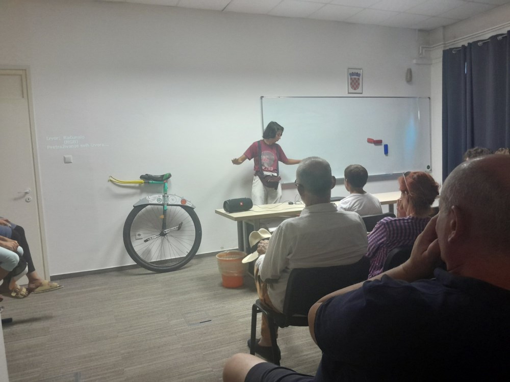 U svom je gradu, u jednoj od učionica Pučkog otvorenog učilišta Samobor, pred tridesetak naših sugrađana prepričala danas svoj monociklistički putopis i doživljaje s njega.