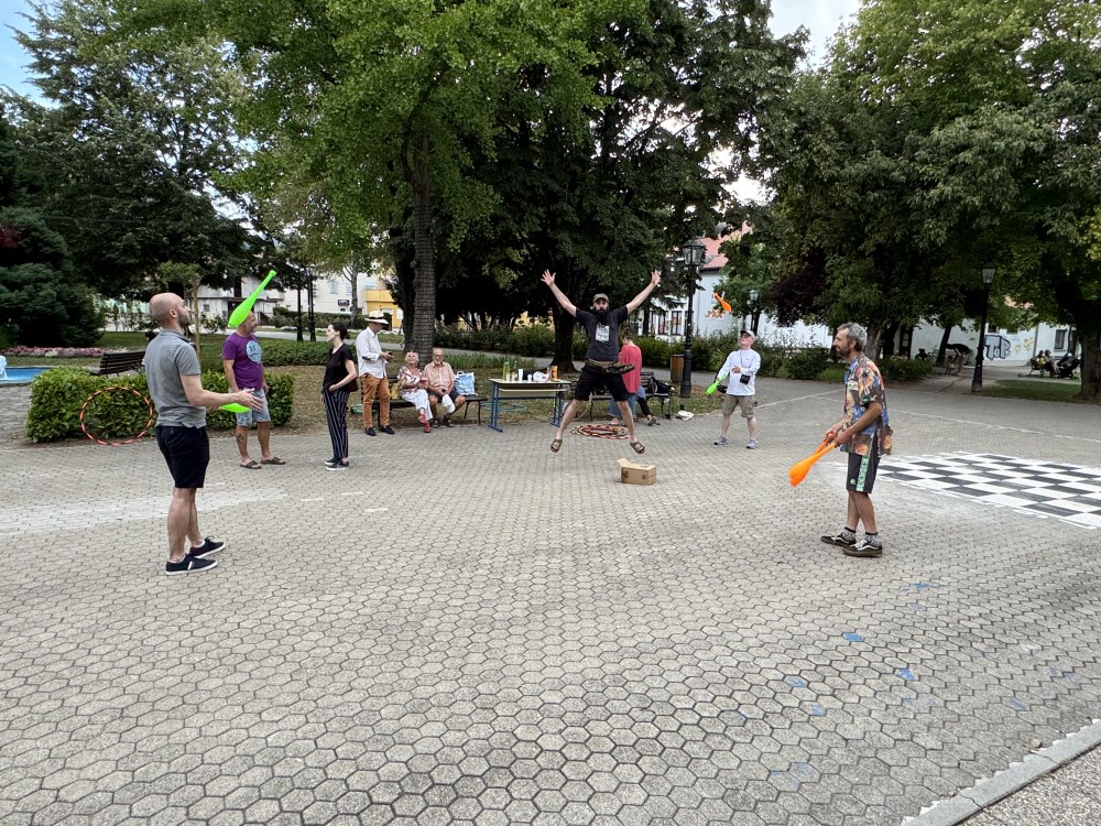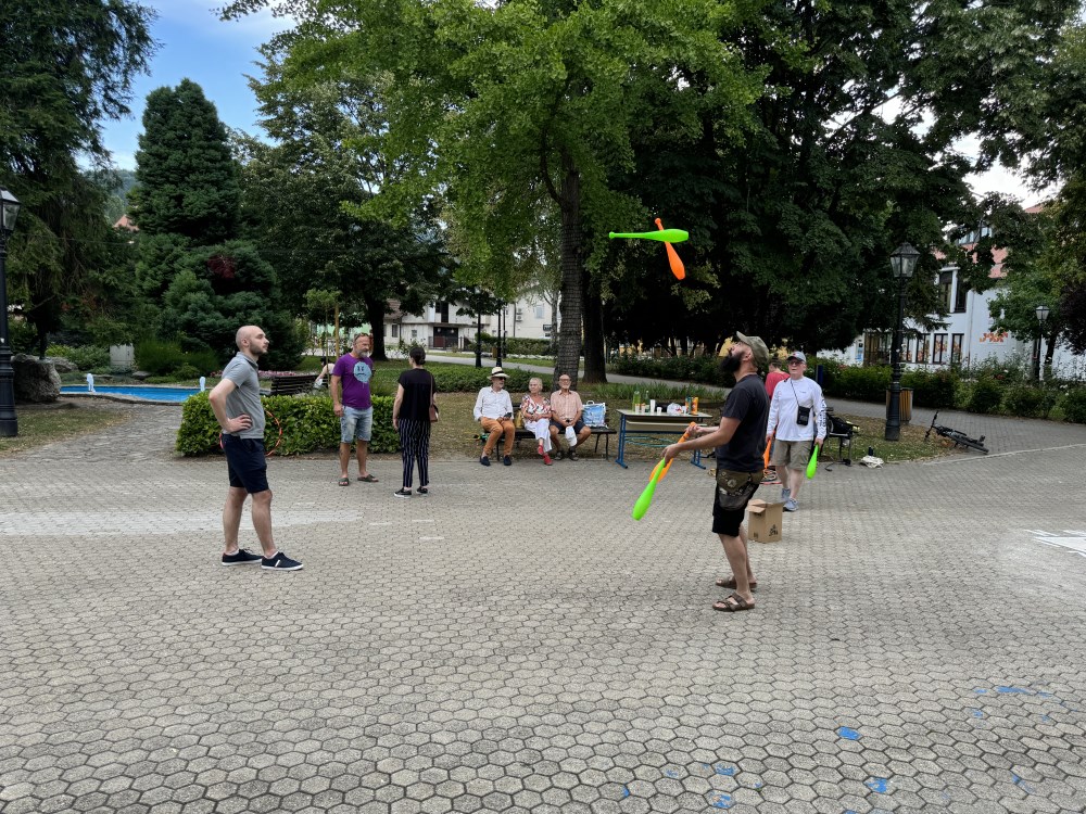 Predstavljanje “klimaTURE” imalo je i dobro posjećen uvodni program ispred zgrade Hrvatskog doma, odnosno male radionice cirkuskih vještina, tj. Cirkus Mixer, u organizaciji samoborske Udruge Cirkultura s kojom i Hana redovito nastupa.