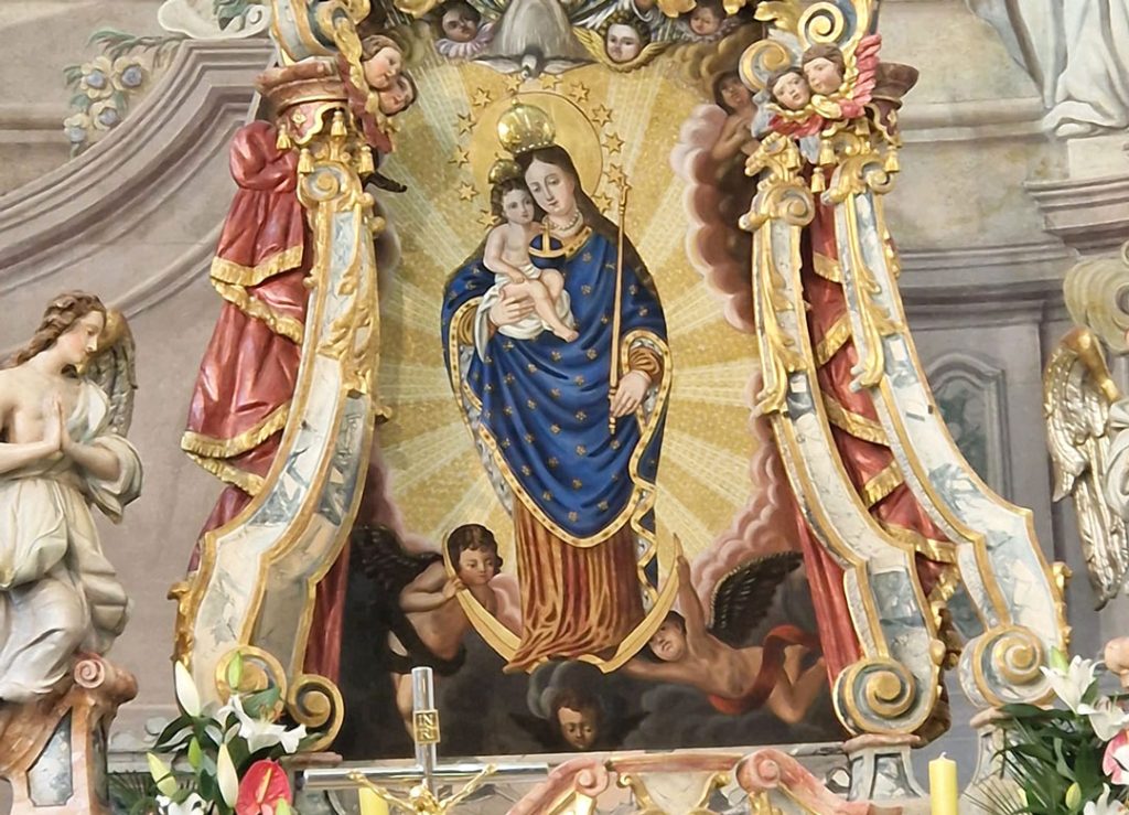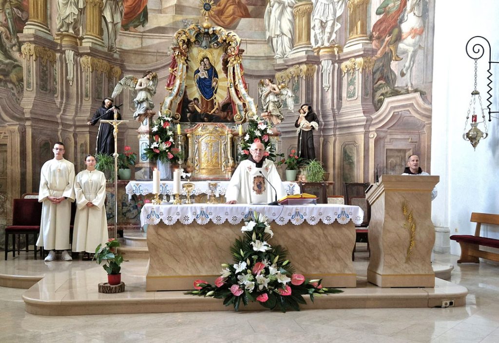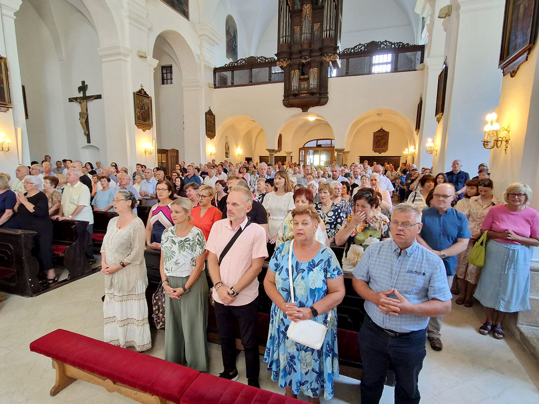 – Slovenski umjetnik Franc Jelovšek osmislio je sliku koja se nalazi iza oltara našeg samostana, a označava Marijino uznesenje na nebo. Umjetnik uzima elemente iz crkve i oslikava ih na freski da Marijin grob danas uobličimo u crkveni oltar – uvodne su riječi fra Željka Janjića u svečano misno slavlje.