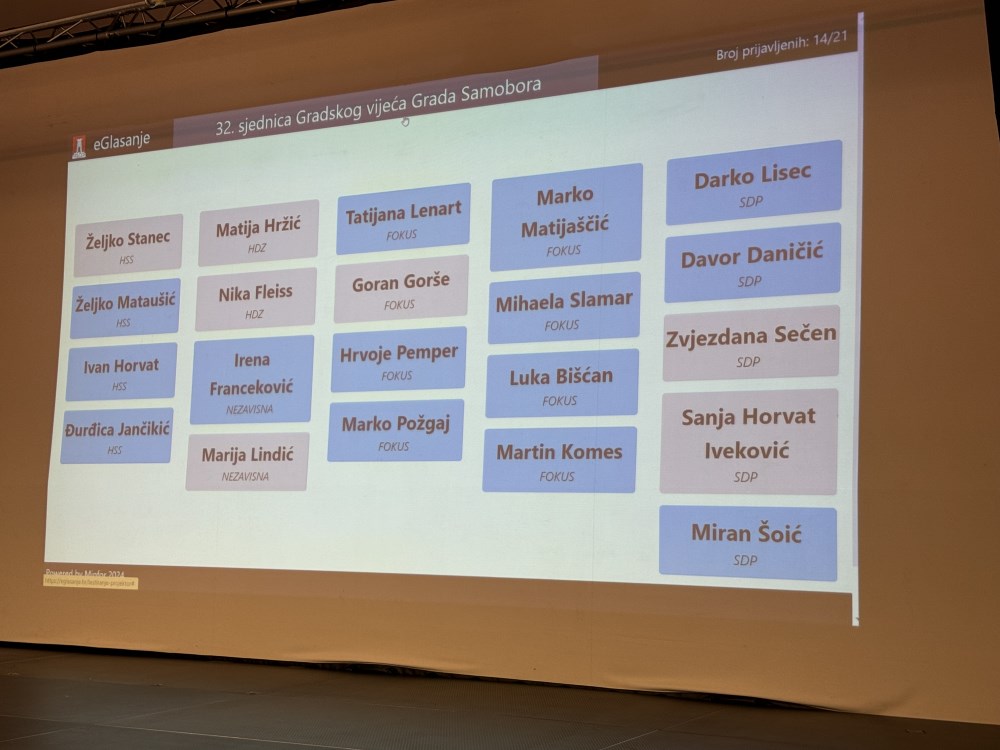 Ovo zasjedanje gradskih vijećnika obilježio je i prelazak na elektroničko prijavljivanje na rasprave i replike s ograničenim vremenom njihovog trajanja te elektroničko glasovanje. Sjednici je nazočilo 14 od ukupno 21 vijećnika, a ovih sedmero je opravdalo svoj izostanak.