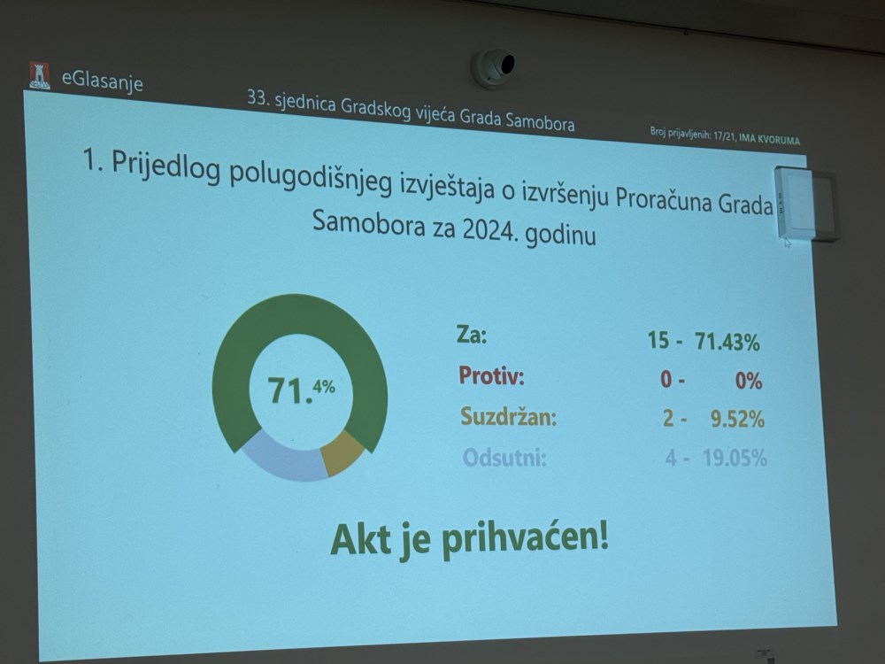 Jučerašnju kasnoposlijepodnevnu sjednicu Gradskog vijeća Samobora, 33. po redu u aktualnom sazivu, održanu u Galeriji Prica, obilježili su izglasavanje izvršenja gradskog proračuna u prvom polugodištu ove godine i njegov treći ovogodišnji rebalans.