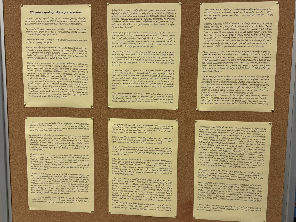 Sve je bilo popraćeno podjelom male brošure tiskane u povodu ovog jubileja te velikom izložbom koja prikazuje aktivnost sportske rekreacije u Samoboru od 1904. godine do danas.