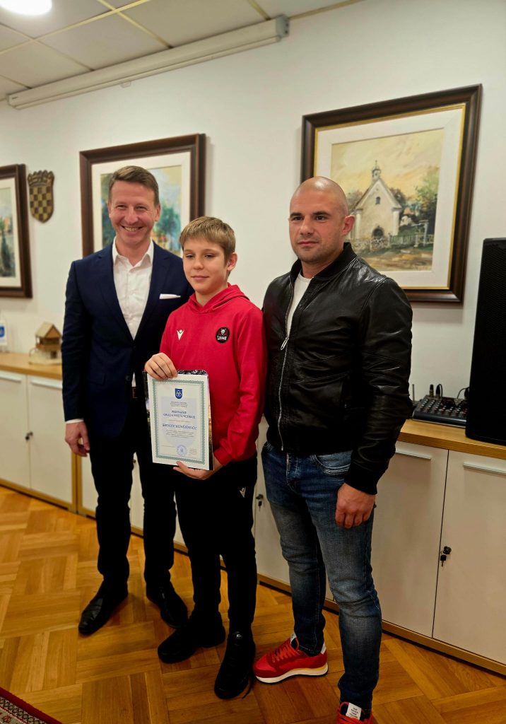-Još od malena sam želio nešto trenirati. Između nogometa i boksa, prevladao je boks. Drago mi je da me Grad podržava i ponosan je na mene. Boks je odličan sport, trudite se, ustrajte i dajte sve od sebe – poručio je Hrvoje Kunštović koji je primio priznanje za osvojeno 1. mjesto u kategoriji kadeti na Državnom prvenstvu Hrvatske u boksu, čime je treći put uzastopno postao prvak Hrvatske u svojoj kategoriji.