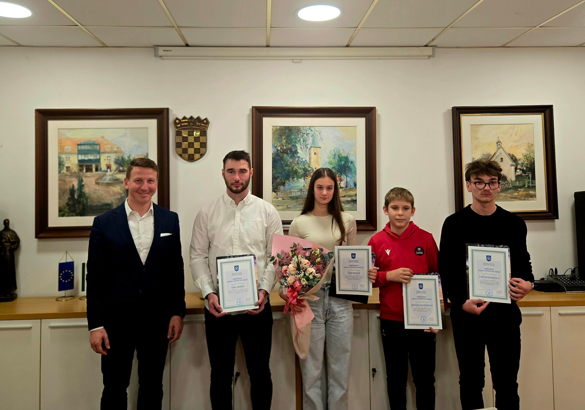 Svečana predaja javnih priznanja i novčanih nagrada uspješnim pojedincima koji su ostvarili iznimne rezultate u sportu i znanosti upriličena je danas u svetonedeljskoj Gradskoj vijećnici. Gradonačelnik Dario Zurovec čestitao je Tari Grdur, Tinu Meštroviću i Hrvoju Kunštoviću za sportski te Tinu Oršiću za inovatorski uspjeh i istaknuo važnost podrške talentiranim pojedincima. -Impresioniran sam rezultatima pogotovo kad pogledamo discipline i grane kojima se ovi mladi ljudi bave. To uistinu zaslužuje prepoznavanje i nagradu. Znajući koliko elemenata i faktora treba uskladiti kako bi bili uspješni u nekom sportu te što je sve potrebno da izmislite nešto novo u današnje doba, svakako ih treba pohvaliti i podržati. Ponosni smo na vaše iznimne uspjehe. Vi ste dokaz da predanost, trud i strast donose rezultate, a mi ćemo se kao grad uvijek truditi pružiti vam podršku kako biste ostvarili svoj puni potencijal – rekao je Zurovec.