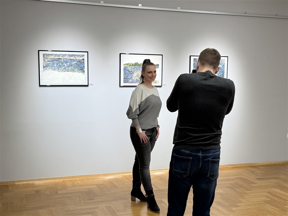 Tako je Mateja Rusak za ove radove koristila radni materijal od svoje prethodne izložbe, koja se zvala “Hommage Rijeci”, što je bitno znati u promatranju njezinih izloženih slika jer to, bar donekle, može dočarati spoznaju o tome kako su one nastale. -Umjetnica je koristila monotipije na novinskim papirima kojima je skidala prvi sloj grafičke boje s matrice, a onda je pomno selektirala one novinske papire na kojima su boje koje su njoj emocionalno bliske, a to su plava, zelena, tirkizna te žrtvovala jedan dio kompozicije – stručno je objasnila kustosica i dodala kako ovaj ciklus Mateje Rusak ima i meditativni proces jer da bi se postigla gustoća zastupljenih perforacija treba puno vremena i strpljenja.