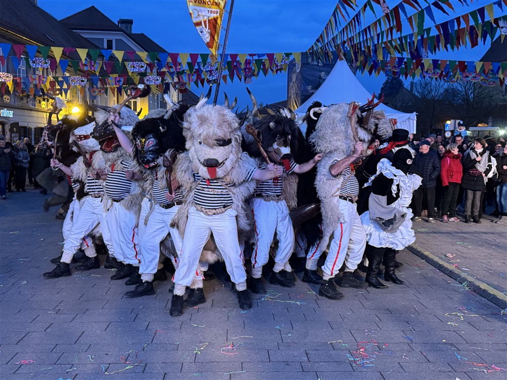 Danas poslijepodne i navečer u Slobodnu Fašničku Republiku stigli su fašnički prijatelji, Halubajski zvončari iz Viškova, Kulturno-umjetnička udruga Čaplja iz Podturena u Međimurju, Radosni Črički iz Ormoža u Sloveniji, Šatrovačke pahuljice iz KUD-a u naselju Šartovac u Kutini, Rimljanke iz Repušnice pokraj Kutine, Dobovski faraoni i kleopatre iz Slovenije, Lučka žlahta iz Loča pri Dobovi, Suger scull Šećerne lubanje s Makarske rivijere, Karnevalska udruga Tomer Krnjeval iz Biograda na Moru, Udruga Galjske mačkare iz malog sela Gale u Općini Otok u Splitsko-dalmatinskoj županiji te Kapelski krampusi iz Brežica.