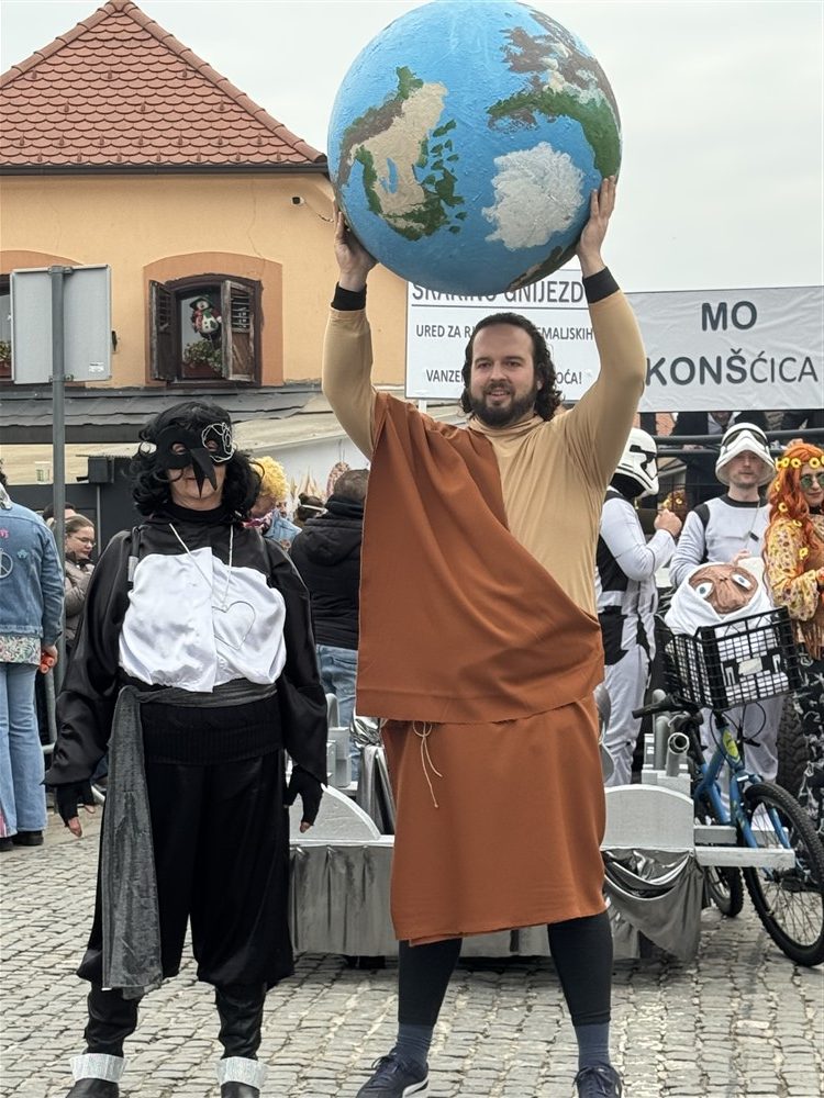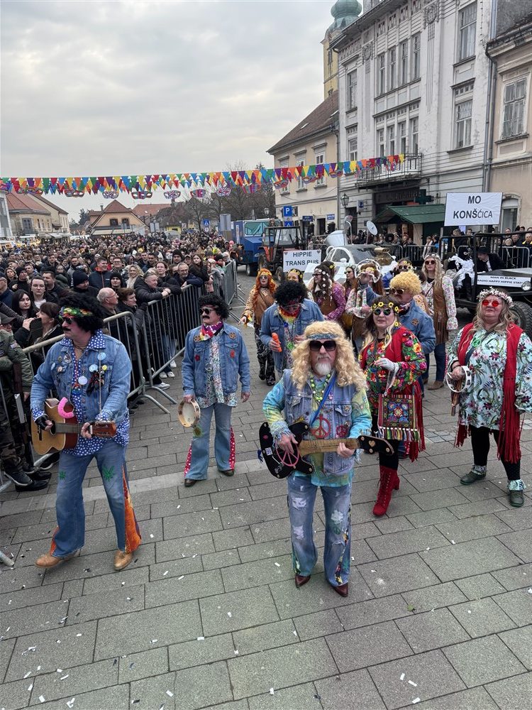 Konšćica i njezina postojana fašnička družba došla je sa svojom Srakom i njezinim gnezdom, koje je, ustvari, Ured za rješavanje zemaljskih i vanzemaljskih bedastoća. Osnovna im je poruka bila da treba širiti ljubav i mir kako bi nam Zemlja opstala. Prikazali su to globusom koji su, s jedne strane, izvanzemaljci došli okupirati, a s druge su bili hipiji koji su širili tu ljubav i taj mir, vozeći se globusom besplatnim autobusom.