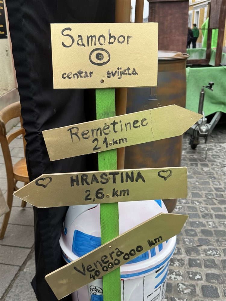 Hrastina je u svoj igrokaz tečno spojila davnu povijest i neku buduću sadašnjost, odnosno nekadašnje fašničko-karnevalske balove iz davne 1828. godine, koji su, preko Komparea i društva, uz oponiranje tadašnje vlasti, doveli do ovog što danas nazivamo fašničkim spelancijama. U to su upleli nestvarne političare-svemirce s Uranus planeta koji su, u stihu i rimi, ovu povijesno zbiljsku priču ispričali u krčmi “Pri Venerinom bregu”.