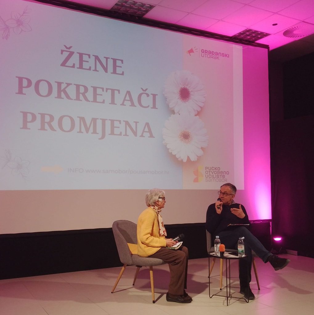 Volonterka i humanitarka, animatorica i trenerica, rekreativka i širiteljica dobrih vibracija – sve je to, i više od toga, naša agilna i neumorno aktivna sugrađanka, gospođa Đurđa Vuković, koja će ovaj mjesec napuniti 95 godina života. O svom nesebičnom darivanju Samoborkama i Samoborcima, ali i mnogima drugima, kroz duga desetljeća, govorila je sinoć u POP UP ART kinu na Građanskom utorku, pred auditorijem koji ju, jedni više, a drugi manje, poznaje, kao i ona njih. Bila je to tribina iz Ciklusa “Snažne žene”, pod nazivom “Žene pokretačice promjena”, kojom su u Pučkom otvorenom učilištu okončani ovogodišnji “Ženijalni dani”.