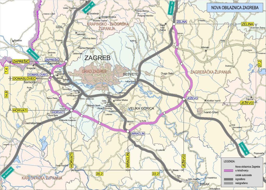 Zagrebačka obilaznica, puštena u promet 1981. godine, danas je najopterećenija dionica autoceste u Hrvatskoj s više od 80.000 vozila dnevno u ljetnim mjesecima. Kako bi se odgovorilo na rastuće prometne potrebe i odvojio lokalni od tranzitnog prometa, planira se izgradnja Nove zagrebačke obilaznice, duljine oko 95 kilometara. Ravnatelj ŽUC-a Zagrebačke županije izrazio je potporu za projekt novog prstena Zagrebačke obilaznice čija će trasa povezati okolne gradove i općine, njih ukupno 13, koji gravitiraju prema Gradu Zagrebu, čime se pridonosi povezivanju cijele regije Zagrebačke županije i prolazi kroz sljedeće jedinice lokalne samouprave: