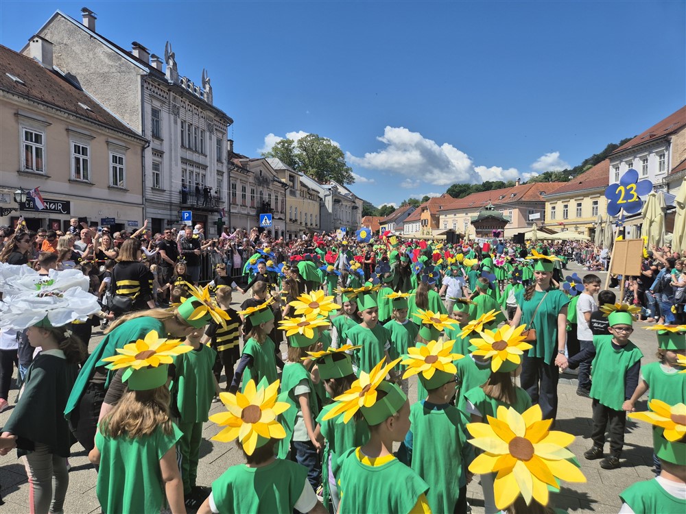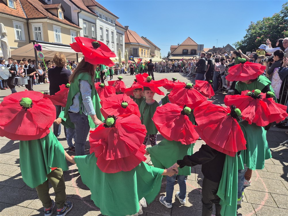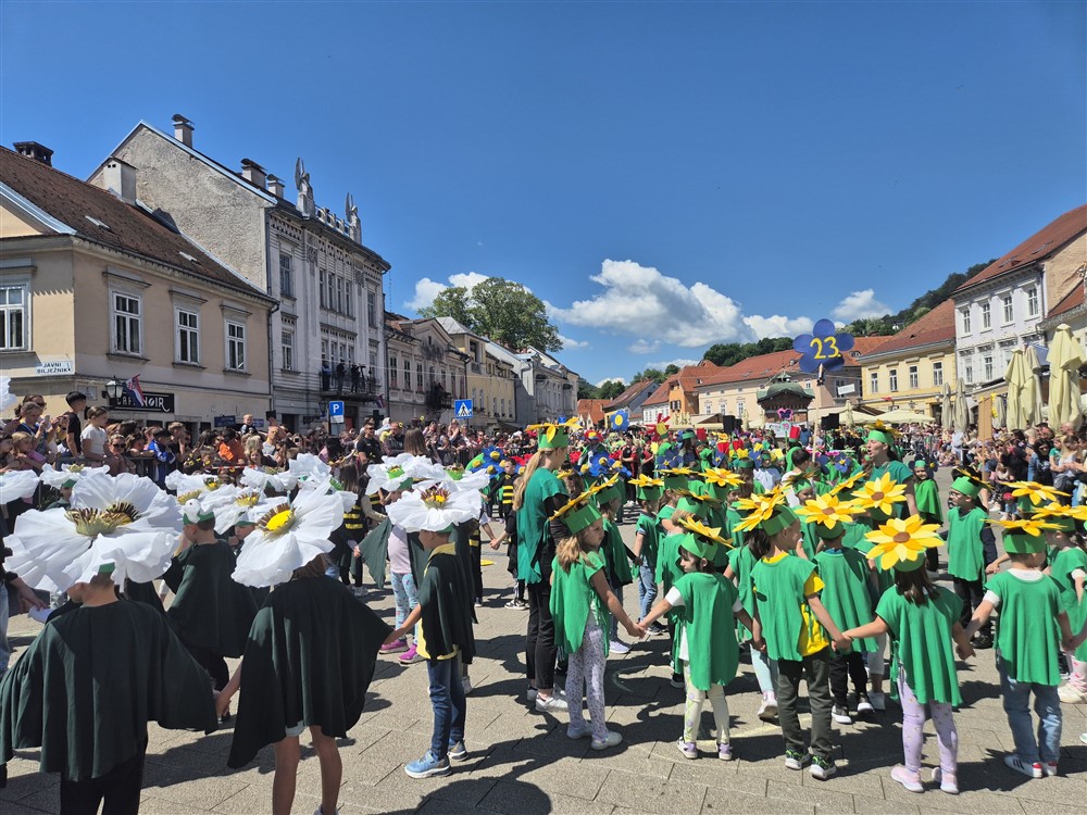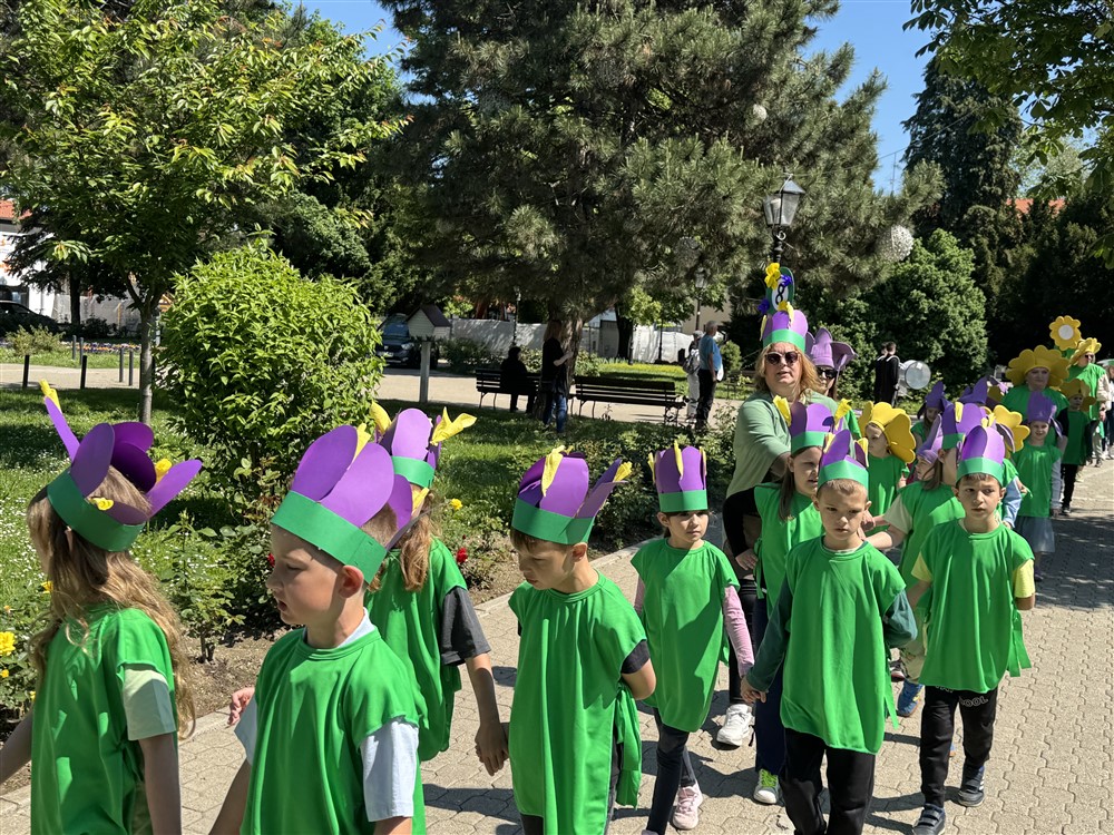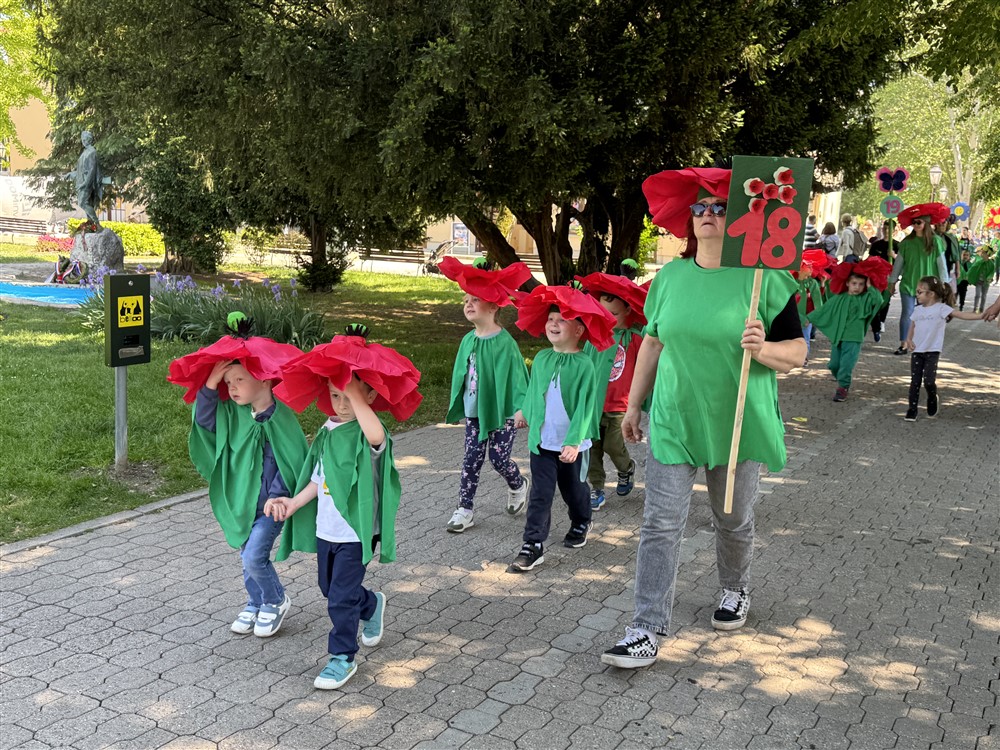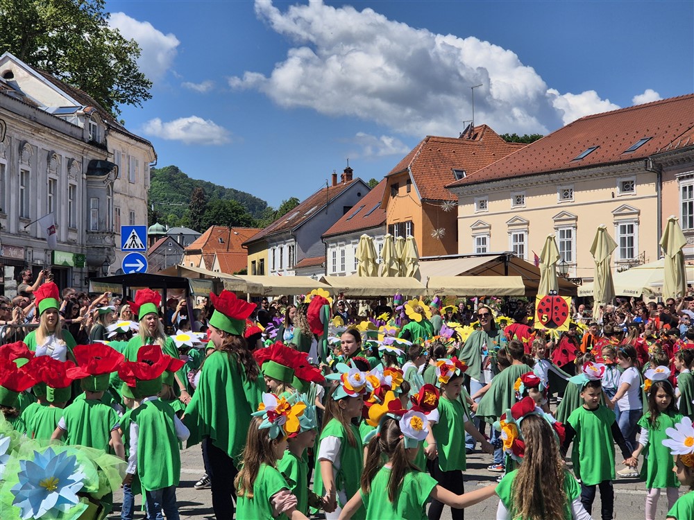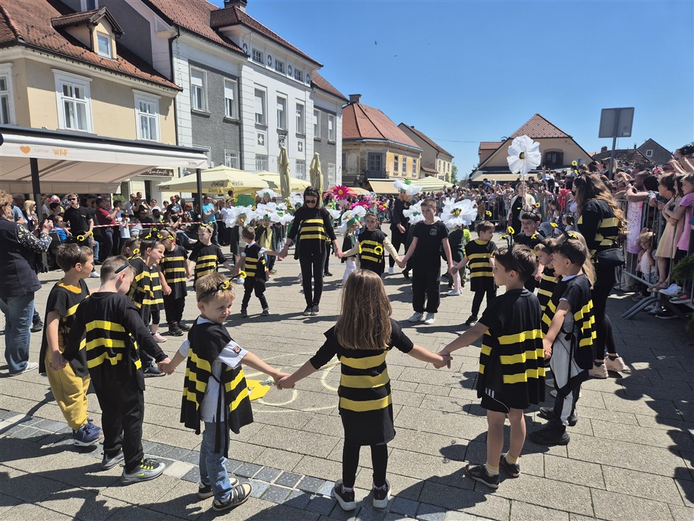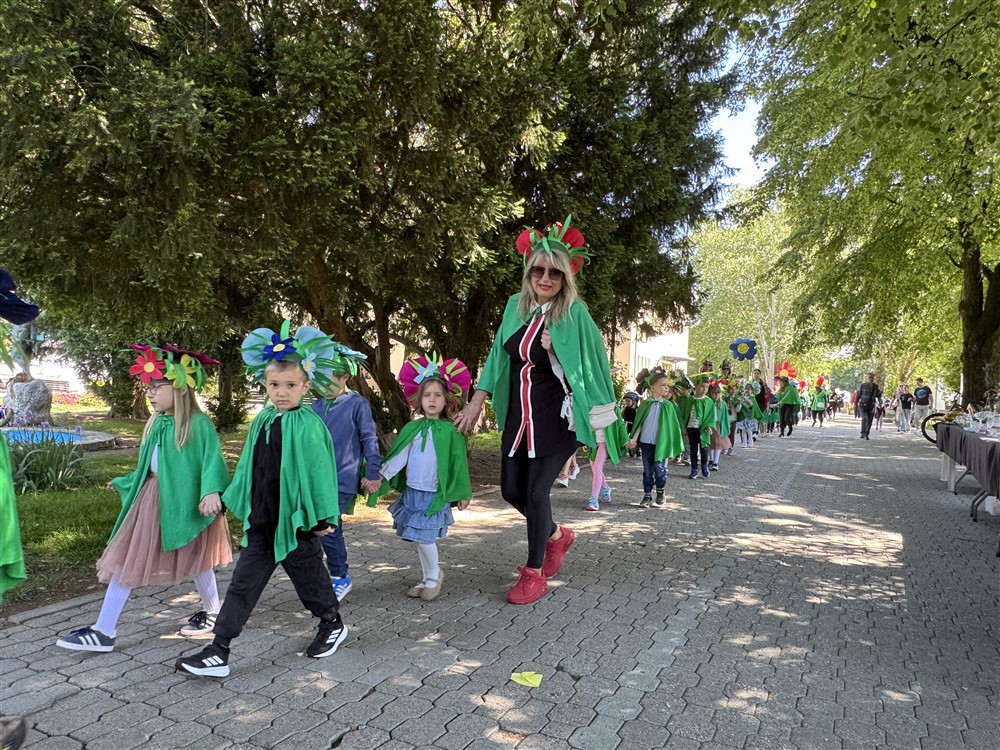 Zadivili su svojim šarenim cvjetnim kostimima, prošetavši iz parka Dječjeg vrtića Izvor u Mlinskoj ulici do Trga kralja Tomislava, gdje su i izveli plesni program od desetak tradicionalnih hrvatskih folklornih plesova.