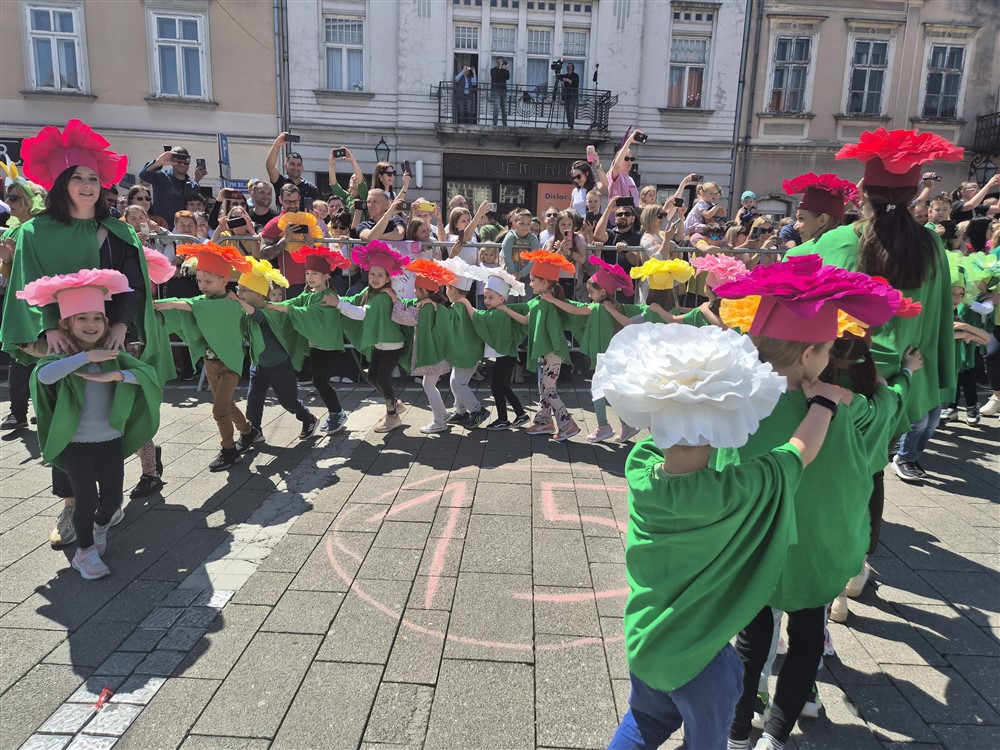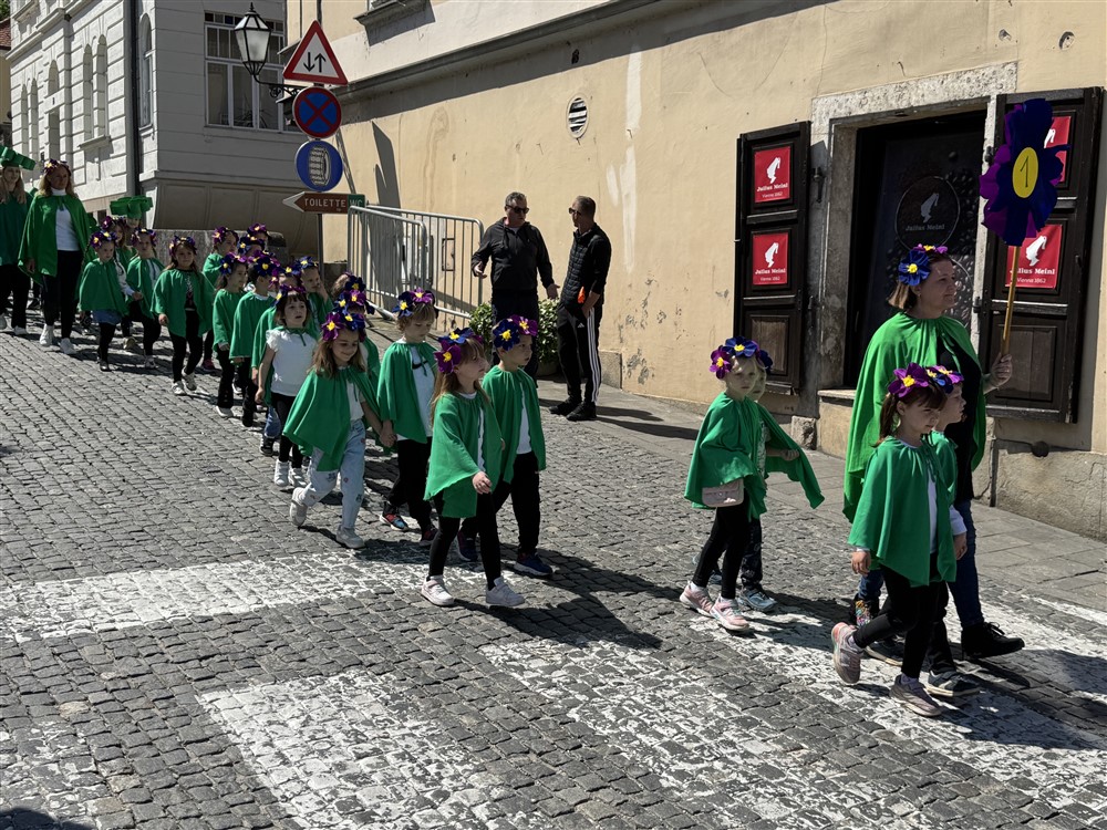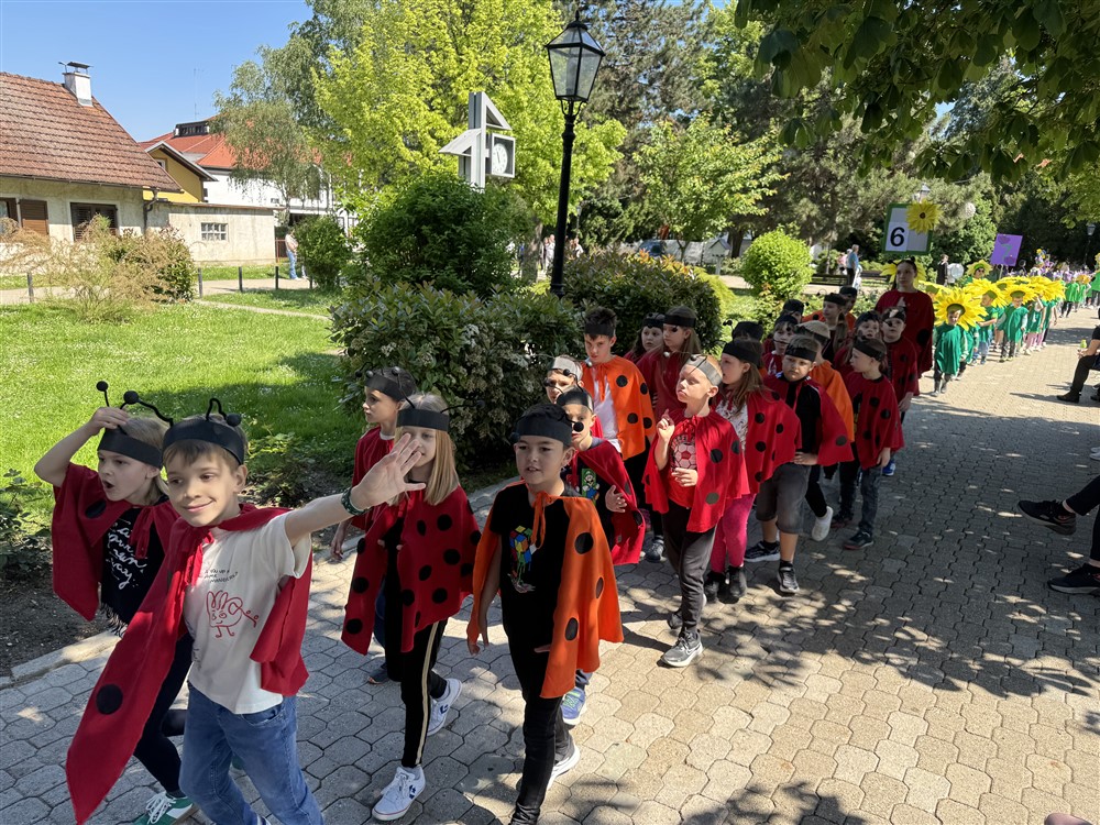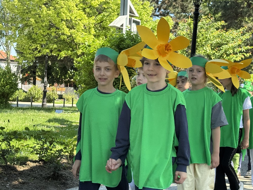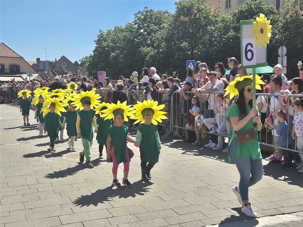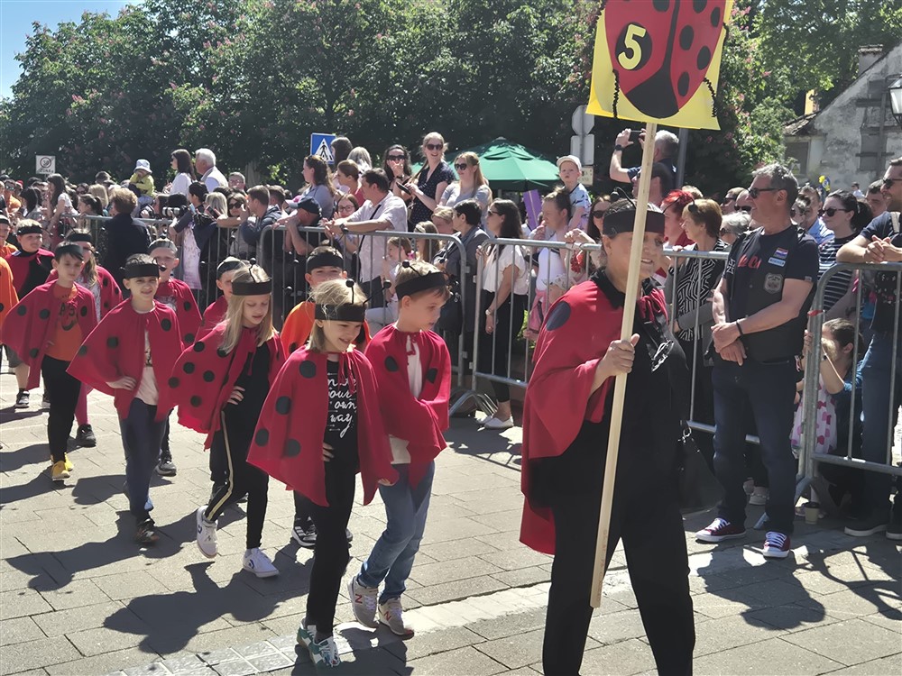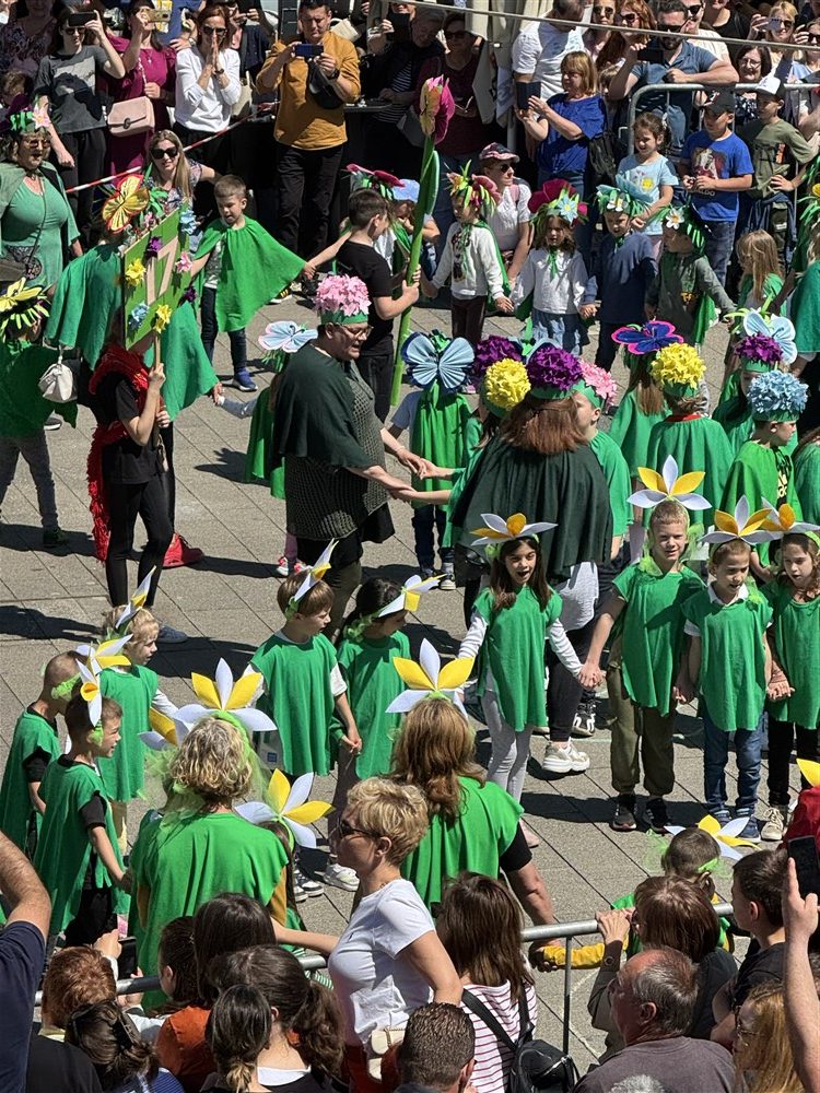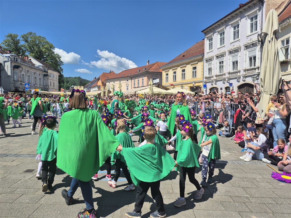Zadivili su svojim šarenim cvjetnim kostimima, prošetavši iz parka Dječjeg vrtića Izvor u Mlinskoj ulici do Trga kralja Tomislava, gdje su i izveli plesni program od desetak tradicionalnih hrvatskih folklornih plesova.
