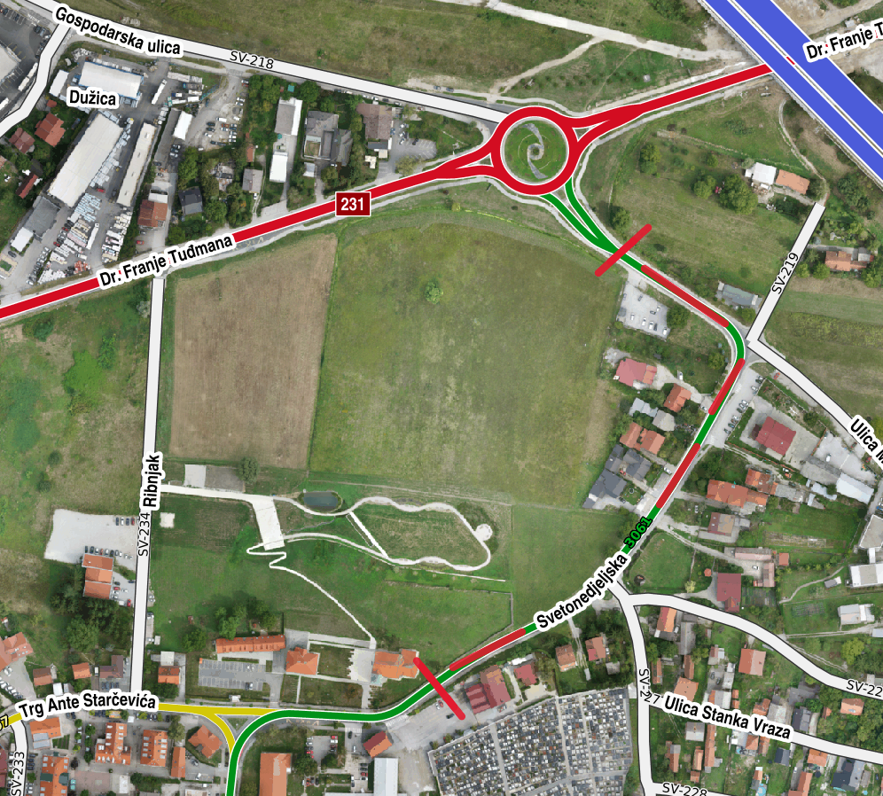 Obilazni smjer za vrijeme izvođenja radova bit će Ulica Franje Tuđmana – Ulica Marijana Stilinovića – Svetonedeljska cesta.