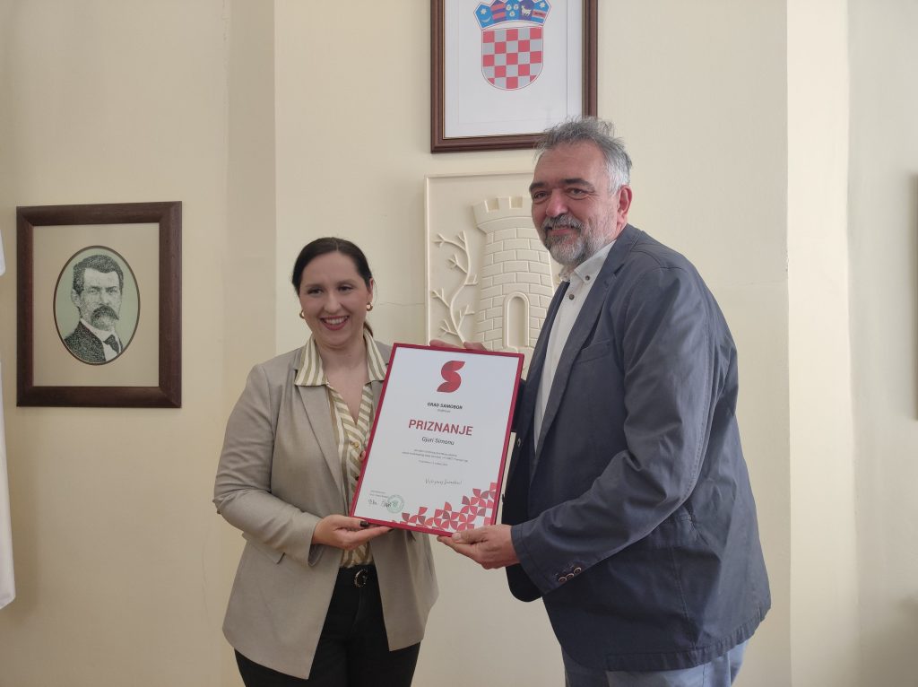 Gradonačelnica Petra Škrobot uručila je prigodna priznanja Upravi i prvotimcima “Risova”, a predsjednik KK Samobor, Mislav Maroević poklonio je gradonačelnici Škrobot i pročelnici Breglec personalizirane klupske dresove i loptu s potpisima svih igrača.