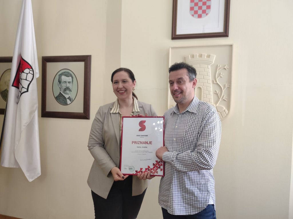 Gradonačelnica Petra Škrobot uručila je prigodna priznanja Upravi i prvotimcima “Risova”, a predsjednik KK Samobor, Mislav Maroević poklonio je gradonačelnici Škrobot i pročelnici Breglec personalizirane klupske dresove i loptu s potpisima svih igrača.