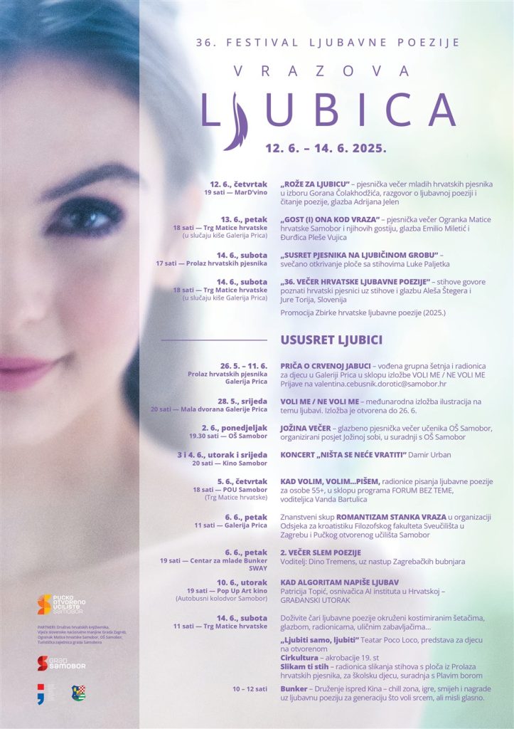 Tradicionalno 36. izdanje Festivala ljubavne poezije Vrazova Ljubica održat će se ove godine od 28. svibnja do 14. lipnja u našem gradu.