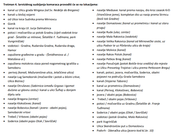 Detaljan popis lokacija koje će biti tretirane provjerite u nastavku: