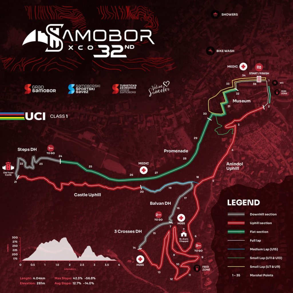 Iz 30-ak zemalja dolazi oko 300 natjecatelja, za koje je već pripremljena, fizički i tehnički zahtjevna cestovno-šumska staza u duljini od 4100 metara, od glavnoga gradskog trga, preko Anindola i Park šume Tepec do Starog grada, pa preko Samoborskog muzeja ponovno do Trga. Staza sadrži i atraktivan “balvan spust” te jednako zahtjevan spust stubama podno Starog grada. Danas je, do 19 sati, otvorena za testiranje i upoznavanje konfiguracije.