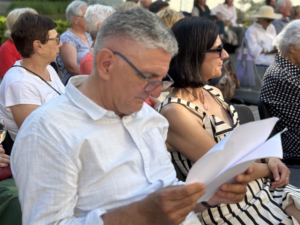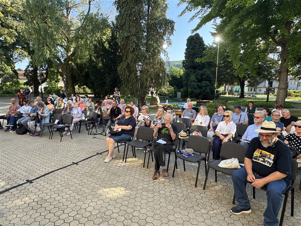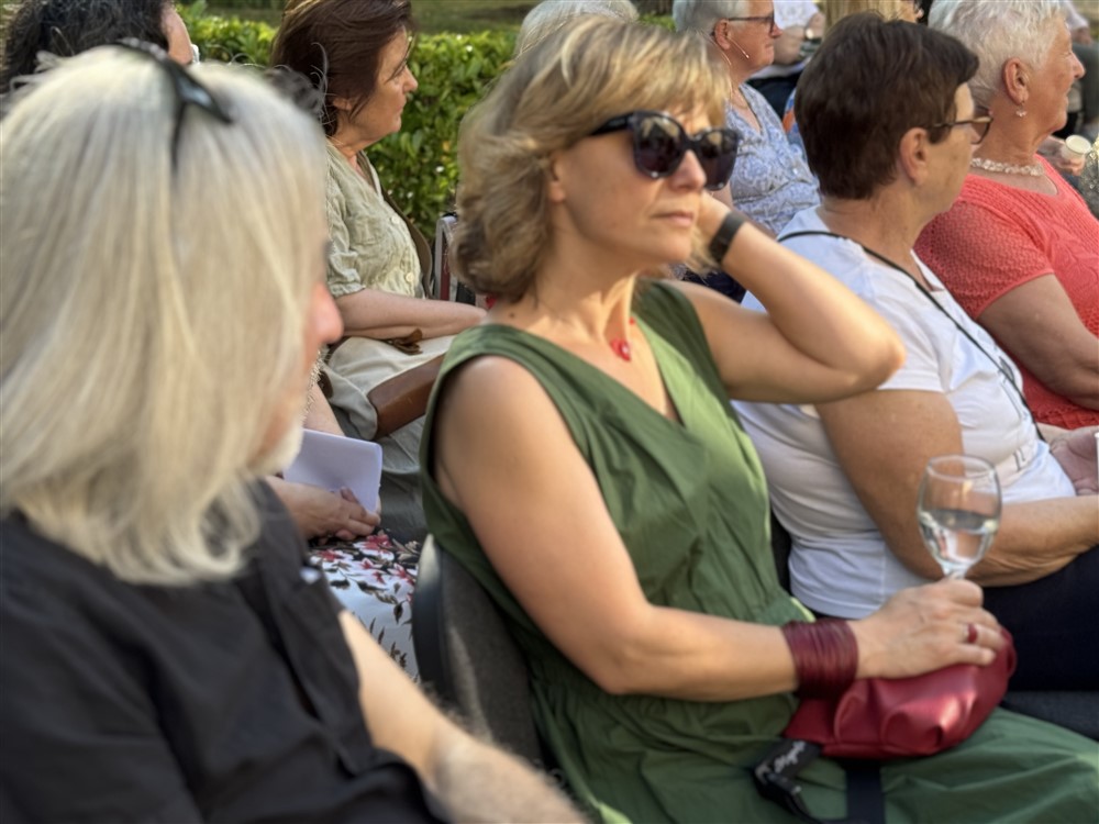 Jelena Vojvoda se osvrnula na svih 16 ovogodišnjih festivalskih programa napomenuvši kako je Festival prije 36 godina imao tek jedan – pjesničku večer. Izdvojila je pritom ovogodišnju izložbu na ljubavnu temu “Voli me, ne voli me” u sklopu koje su izložene i grafike Mirana Šabića inspirirane stihovima Luke Paljetka. Vojvoda se posebno osvrnula i na znanstveni skup unutar Festivala na temu romantizma Stanka Vraza, priređen po prvi put u suradnji s Odsjekom za kroatistiku Filozofskog fakulteta u Zagrebu. Govorila je i o drugim događanjima, posebno onima namijenjenima djeci i starijoj populaciji te uključivanju umjetne inteligencije u Festival. Završila je interpretacijom stihova Stanka Vraza iz njegovih Đulabija, i to iz izdanja starog 162 godine.