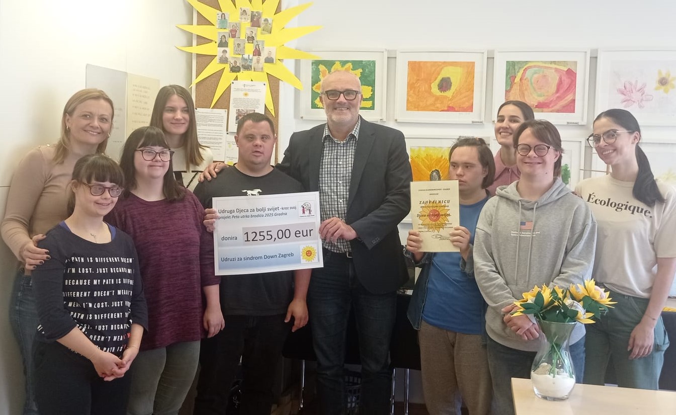 Udruga Djeca za bolji svijet uručila je Udruzi za sindrom down donaciju od 1.255 eura, koja se skupila od dobrovoljnih priloga sudionika 5. utrke brodića na potoku Gradni, održanoj 21. rujna.