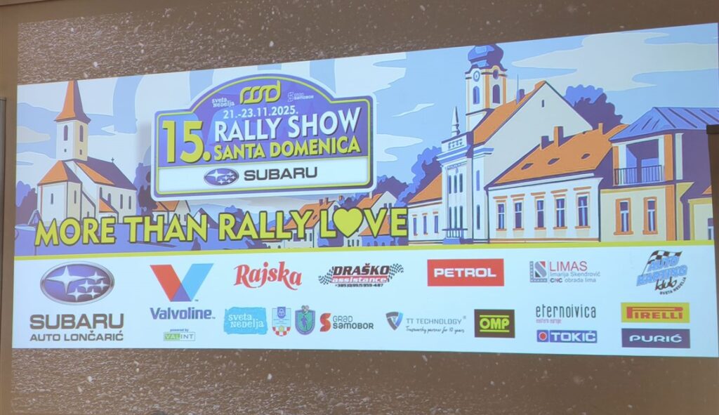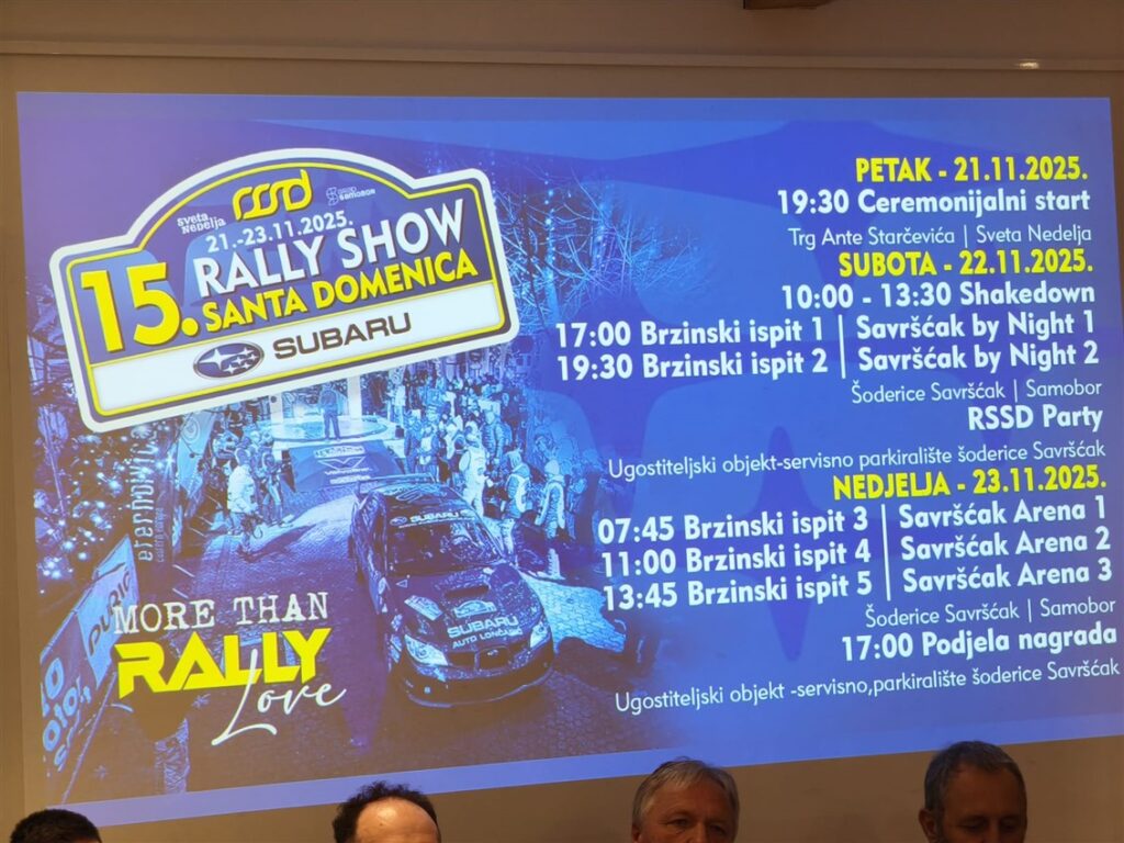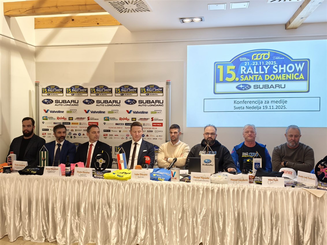Rally Show Santa Domenica, 15. po redu u organizaciji Auto karting kluba Sveta Nedelja, održat će se dolazećeg vikenda, od petka do nedjelje, na šodericama Savršćaka. Na ovo jubilarno izdanje prijavljeno je 164 posada iz 11 zemalja, a danas su na press konferenciji, u prostorijama svetonedeljske turističke zajednice, predstavnici organizatora, gradova domaćina – Svete Nedelje i Samobora te vozači najavili program i atmosferu uoči natjecanja.