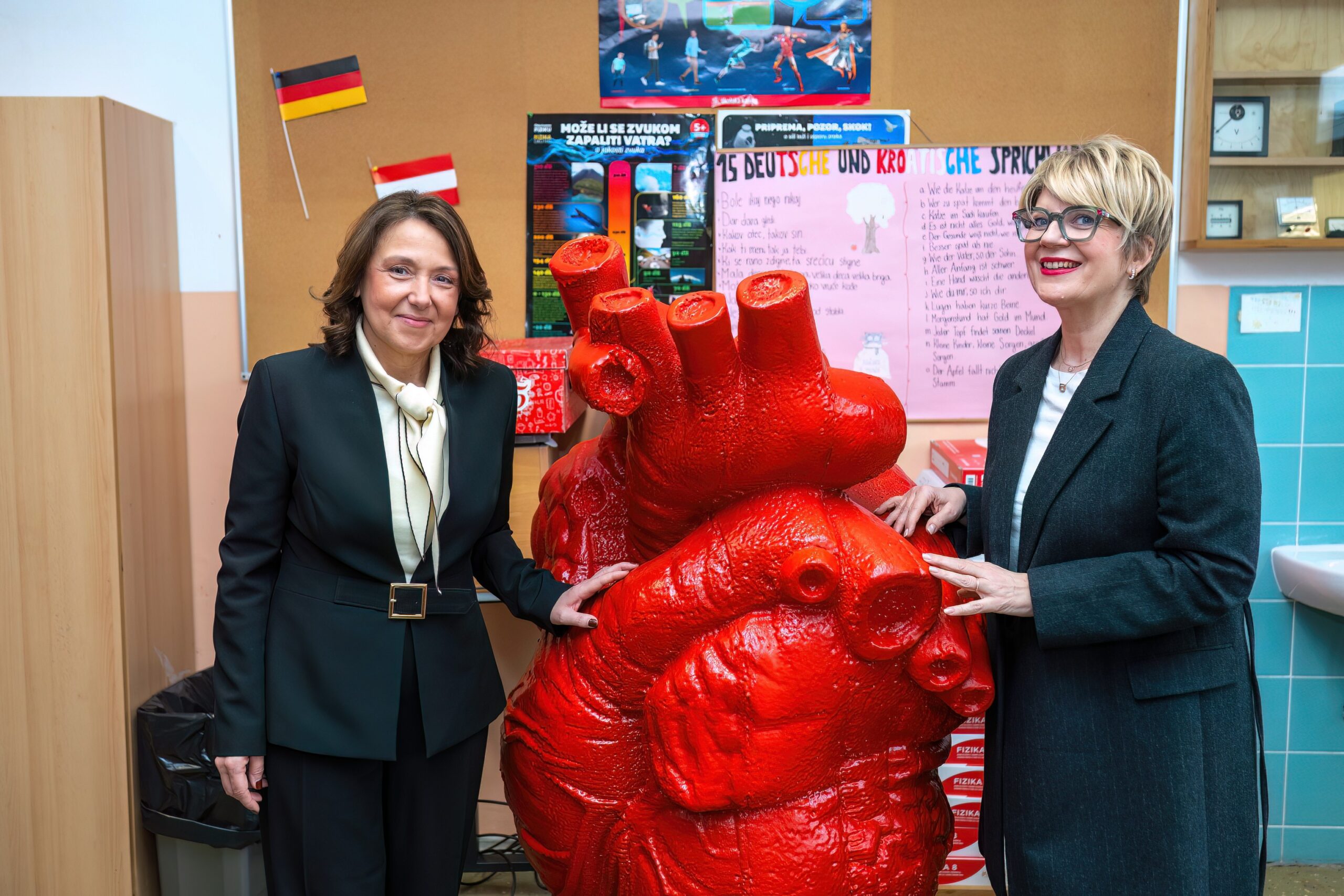 Jedno od troje ljudi na svijetu u riziku je od razvoja ozbiljne srčane aritmije, a što sve utječe na puls srca i kako ga jednostavno provjeriti, učenicima su demonstrirale ministrica zdravstva i prim. Pezo Nikolić. Uz brojna pitanja školaraca i njihove komentare, dale su odgovore i savjete kako i zašto čuvati zdravlje srca, ali i zdravlje u cjelini, a u izvedbi edukacije pomagao je domaćin, ravnatelj Škole, Igor Matijašić.