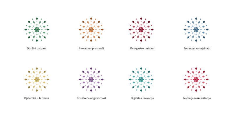 Četvrto izdanje donosi osvježeni vizualni identitet koji crpi inspiraciju iz tradicionalnih geometrijskih uzoraka narodnih nošnji Turopolja. Središnji motiv, stilizirana rozeta sačinjena od dijamantnih i romboidnih elemenata raspoređenih u koncentričnim prstenovima u osam smjerova, simbolički povezuje bogatu baštinu Zagrebačke županije sa suvremenim pristupom dizajnu. Svaka od osam nagradnih kategorija dobila je vlastitu prepoznatljivu boju čineći sustav identiteta vizualno bogatim i lako prepoznatljivim.