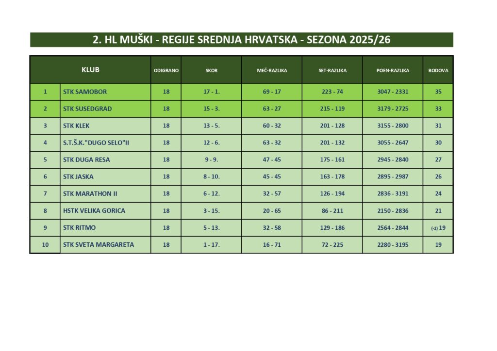 U 12. kolu Druge hrvatske lige – zapad, samoborski stolnoteniski “Zmajevi” gostovali su u subotu u Ogulinu kod momčadi Kleka i svladali je s 4:1, dok su u Dugoj Resi protiv istoimenog domaćina izgubili istim rezultatom.
