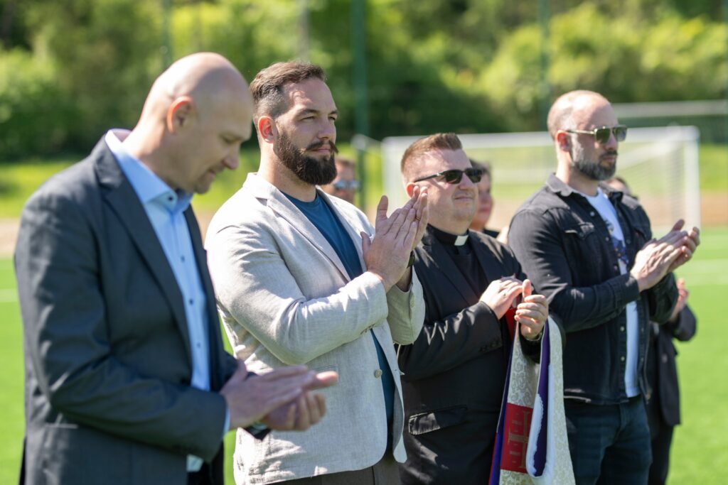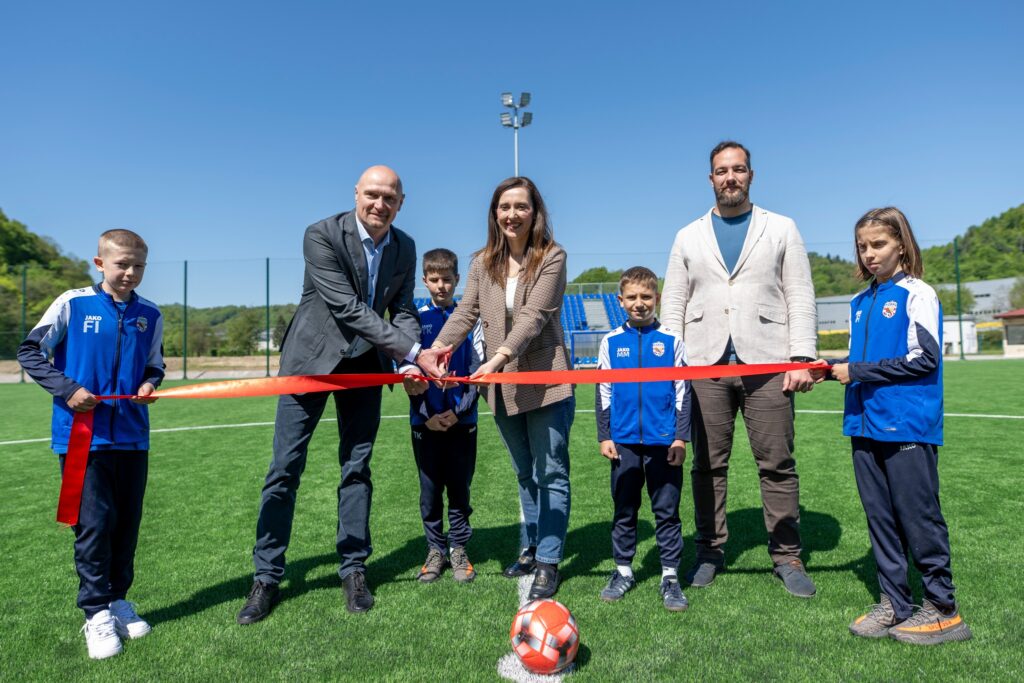 Otvorenju nogometnog igrališta s umjetnom koje će omogućiti kvalitetnije uvjete za sportaše, povećati iskoristivost terena te imati snažan pozitivan utjecaj na lokalnu zajednicu, nazočili su zamjenik gradonačelnice Petar Burić, potpredsjednik Gradskog vijeća Martin Komes, članovi Uprave HNK Kobre Samobor, predstavnica MO Bregana Mateja Grmšek Žlender, predstavnici izvođača radova iz Maxmar Grupe s direktorom Miljenkom Sakomanom, predstavnik Logičke matrice Drago Pavlek te velečasni Josip Čulig koji je blagoslovio igralište. (Foto: Edin Tuzlak)