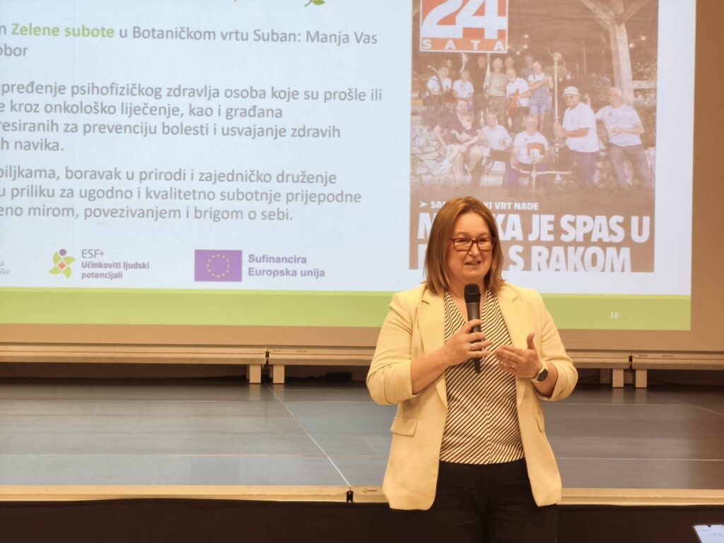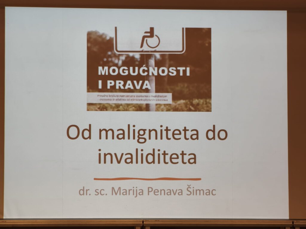 Nakon predstavljanja projekta, konferenciju je predavanjem zaključila dr. sc. Marija Penava Šimac koja je okupljenima objasnila kako onkološki pacijenti ostvaruju pravo na invalidnost. Osim praktičnih i korisnih savjeta te uputa do kojih se teško dolazi, Marija je na kraju predavanja podijelila i svoje svjedočanstvo bolesti. Naime, kada joj je prije nekoliko godina postavljena dijagnoza, ova hrabra žena, majka i znanstvenica prionula je poslu i uspjela, između ostalog, napisati svoju doktorsku disertaciju. Bolest ju je, kako je kazala, promijenila na bolje jer je počela sebe stavljati na prvo mjesto, a to je savjetovala i svima koji su se okupili jučer u Bunkeru. Pohvalila je i rad Udruge Budi dobro čija je članica, te ponosno istaknula da su ovakvi programi kakvi se u okviru civilnog društva provode u Hrvatskoj, uzor puno bogatijim zapadnim zemljama.